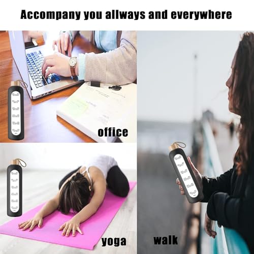 - ✅【آمنة وصديقة للبيئة】زجاجة مياه مصنوعة من زجاج بوروسيليكات متين بنسبة 100%، خالي من مادة بيسفينول أ وبيسفينول اس وبلاستيك بي في سي والرصاص والكادميوم. هذه الزجاجة الزجاجية مصممة تصميمًا مريحًا ومقاومة للتشققات ودرجة الحرارة.