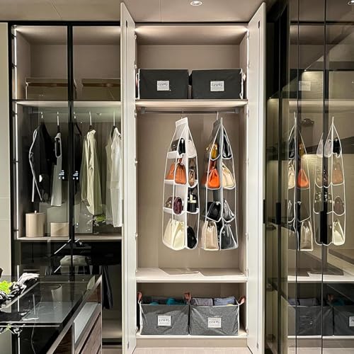 Joyzzz - منظم حقيبة يد معلق من جويز، عبوة من قطعتين منظم معلق لحقيبة اليد مع 8 جيوب كبيرة، منظم تخزين معلق لغرفة النوم العائلية، منظم خزانة معلق للملابس وحقائب اليد
