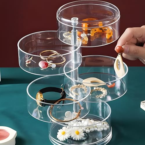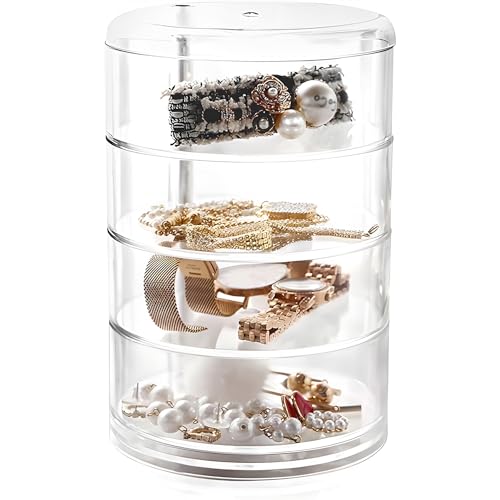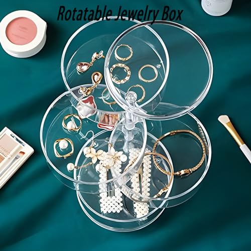 Joyzzz - صندوق تخزين مجوهرات من جويزز عرض قابل للتعديل ودوران 360 درجة منظم اكريليك شفاف مع غطاء للاقراط والاساور والقلائد