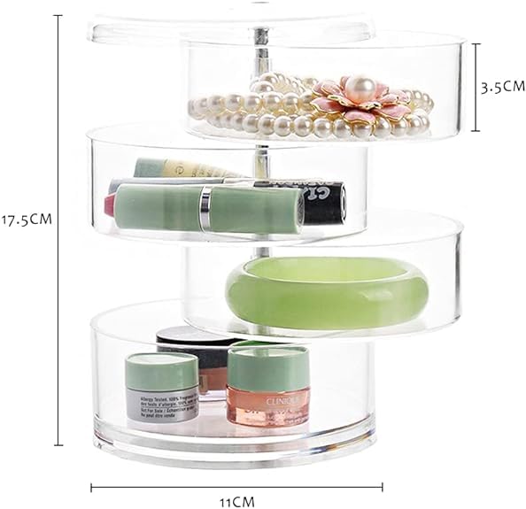 - 【تخزين متعدد الطبقات】4 طبقات من تصميم التخزين الدوار متعدد الطبقات، يمكن تصنيف مساحة تخزين كافية وتخزين متعدد الطبقات للأشياء الصغيرة، لمنع الملحقات المختلفة من الفوضى والتشابك. يمكنها تخزين الأشياء الصغيرة بشكل منظم مثل الخواتم والقلائد والأساور وإكسسوارات الشعر وما إلى ذلك.