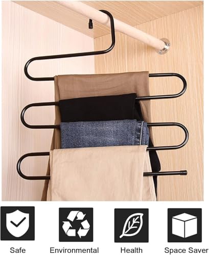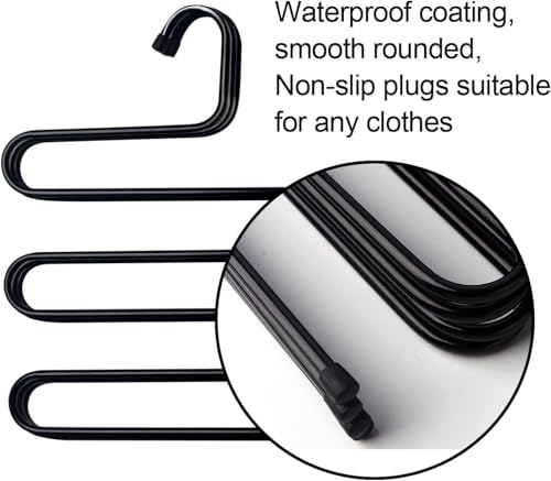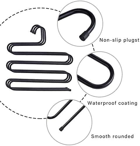 Joyzzz - شماعات بناطيل من جويزز، 5 عبوات من 5 طبقات من 5 طبقات موفرة للمساحة، شماعات من الستانلس ستيل غير قابلة للانزلاق، شماعات ملابس لتعليق البنطلونات والجينز وربطة العنق والاوشحة (لون اسود)