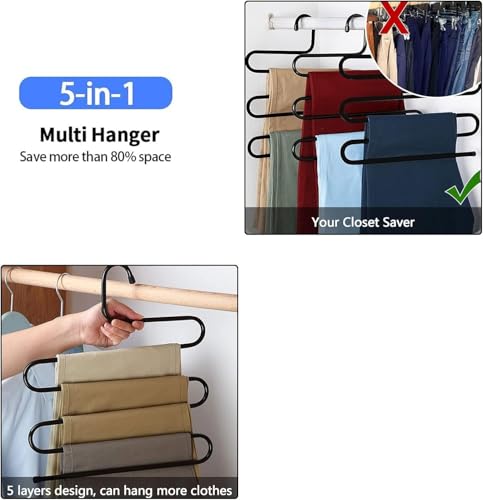 - ✅【وفر المساحة في خزانتك】شماعات سراويل من 5 طبقات. يمكن لكل شماعة ملابس حمل 5 جينز أو بنطلون أو ملابس أخرى على الأقل. قم بزيادة المساحة لتوفير مساحة خزانة ملابسك والحفاظ عليها نظيفة ومنظمة، مما يوفر لك مساحة أكبر لتخزين بعض الأشياء الأخرى.