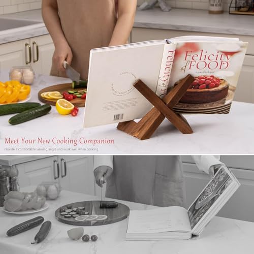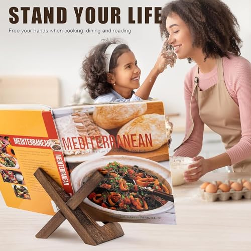 Joyzzz - حامل أطباق للعرض من جويز، حامل كتب طبخ خشبي، حامل متعدد الوظائف لعرض كتب وصفات الطبخ، حامل اطار صور خشبي، حامل كتب طبخ بلون بني لديكور طاولة المطبخ، مقاس 17 سم