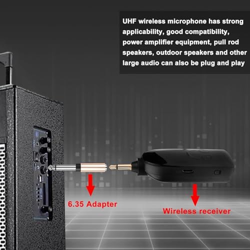 - 🎁【نظام ميكروفون لاسلكي】باستخدام تقنية النقل اللاسلكي يتردد العالي جدًا (التردد العالي)، اتصال لاسلكي مستقر يصل إلى 160 قدم (50 م) في المناطق المفتوحة. بدون تأخير أو تشويش، مع مقاومة عالية للتداخل وجودة صوت واضحة ونقية. مستقبل مزود بمحول مقبس 3.5 مم / 6.35 مم لسهولة الاتصال بمزيد من الأجهزة.
