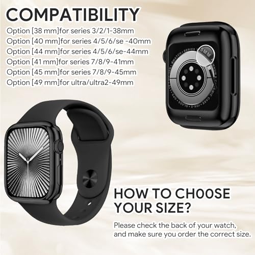 - الموديلات المتوافقة: جراب ساعة ابل 44 ملم متوافق فقط مع السلسلة 6/السلسلة 5/السلسلة 4/السلسلة SE2/سلسلة SE2/سلسلة SE، ولا يناسب الموديلات الأخرى. ملاحظة: يرجى التحقق من الطراز الموجود على الجزء الخلفي من ساعتك لاختيار المقاس الصحيح