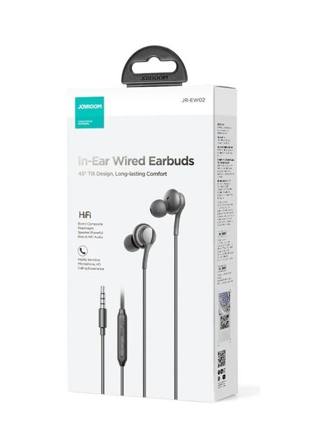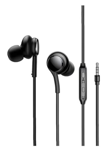 Generic - سماعات سلكية داخل الأذن منفذ 3.5 مم موديل JR-EW02 مع ميكروفون مدمج، صوت عالي الوضوح، وجهير قوي، لون أسود