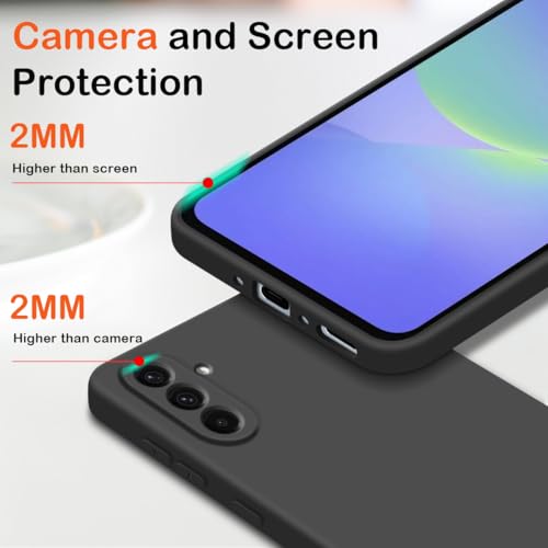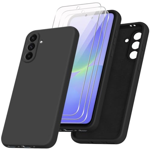jrester - جراب حماية متوافق مع سامسونج جالاكسي A36 شبكة الجيل الخامس 5G مع 3 واقيات شاشة من الزجاج المقوى، جراب واقي من السيليكون السائل الناعم بلون أسود لموبايل سامسونج جالاكسيA36 شبكة الجيل الخامس 5G