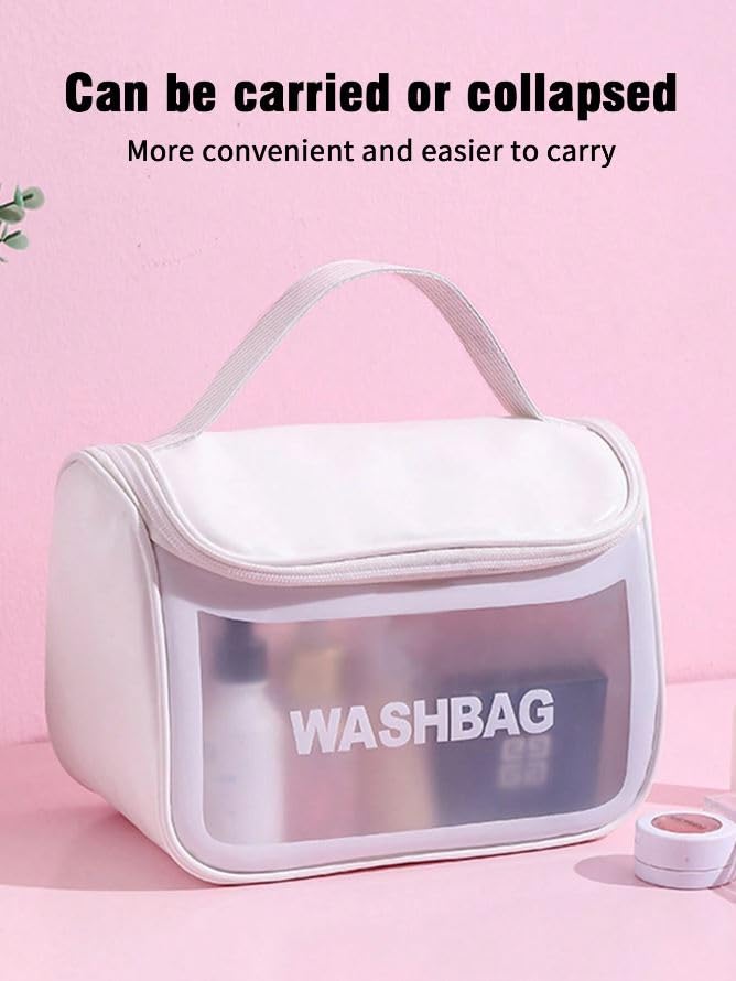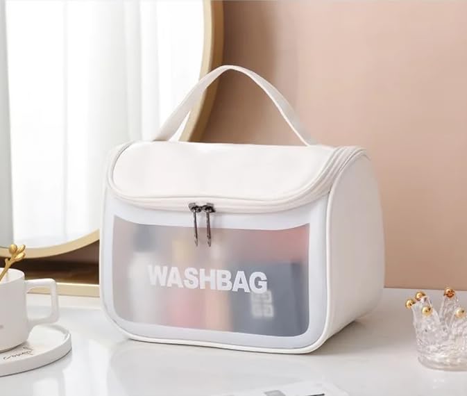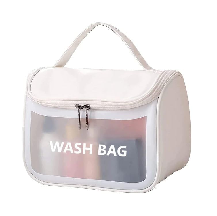 JRM - جي ار ام شنطة سفر لمستحضرات التجميل بسعة كبيرة للنساء - منظم مكياج جلدي مقاوم للماء مع فتحة واسعة فواصل مقبض غسيل مستحضرات ابيض