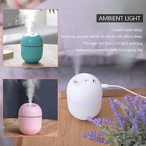 Jroyseter - مرطب هواء وموزع روائح عطرية صغير ومحمول بسعة كبيرة 220 مل بمنفذ USB وهادئ بدون صوت لسطح المكتب للمنزل والمكتب والسيارة من جرويسيتر(وردي)