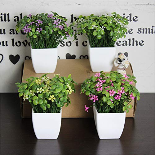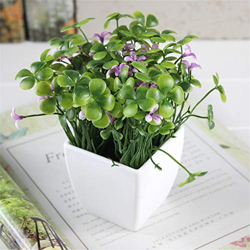 JruF - نبتة برسيم صغيرة بتصميم أربع أوراق مع زهرة (أرجواني) مع فازة مزخرفة مكونة من زهور اصطناعية واقعية نابضة بالحياة ونباتات مرتبة في أصيص من جيه ار يو اف