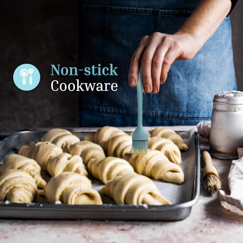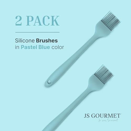 JS Gourmet - فرش المعجنات المصنوعة من السيليكون و فرش دهن بشعيرات مرنة مقاومة للحرارة للطبخ والشواء ودهن الزيت والخبز والتتبيل وغسل البيض والشواء من جيه اس جورميه، لون أزرق (Pastel)