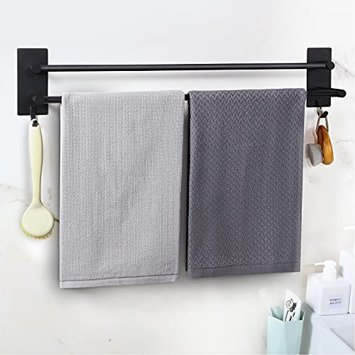 JS - حامل مناشف أسود غير لامع بدون ثقب من جيه اس، حامل فوط حمام ذاتي اللصق مزدوج مع خطافين للمنشفة 60 سم يثبت على الحائط للحمام والمطبخ