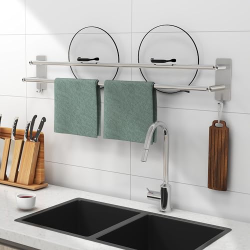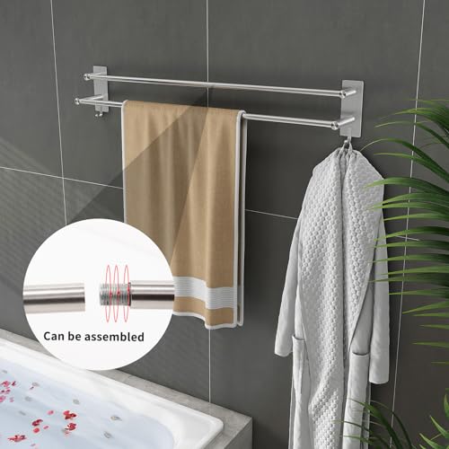JS - حامل فوط من الفولاذ المقاوم للصدأ SUS304 مقاس 80 سم مضاد للصدأ بقضيب مزدوج مع خطافين بتصميم متعدد الوظائف للحمام والدش والمطبخ من جيه اس