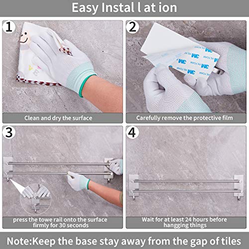 - سهل التركيب: يوفر حامل المناشف ذاتي اللصق الخاص بنا سهولة التركيب. ببساطة قم بلصقه بأمان على السطح النظيف والأملس باستخدام الشريط اللاصق عالي القوة. يمكن استخدامه بعد 24 ساعة من التركيب.