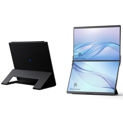 JSAUX - شاشة تعمل باللمس مزدوجة محمولة مقاس 13.5 بوصة فليب جو بدقة 2.2K + حامل جلد مغناطيسي من جي سوكس