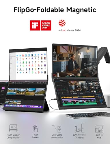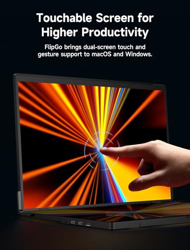 JSAUX - شاشة تعمل باللمس محمولة مزدوجة 13.5 بوصة 2.2K فليب جو من جي سوكس، امتداد لاب توب ثلاثي بتقنية درجة الحماية الماء، واجهة عرض عالية الدقة مع كابل ومنافذ مدمجة وتصميم مغناطيسي لأنظمة ويندوز