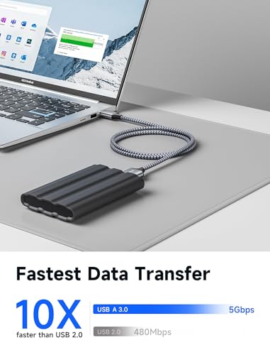- 💪 تصميم نايلون خالٍ من التشابك: تصميم مضفر من النايلون الخالي من التشابك، سلك USB 3.0 هذا يمكن الاعتماد عليه أكثر بكثير من غيره في النطاق السعري. يضيف الكابل المضفر بالنايلون الممتاز متانة إضافية وخاليًا من التشابك.