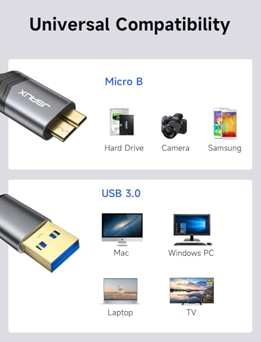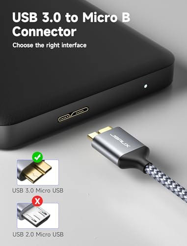 JSAUX - جي سوكس كيبل هارد ديسك [قطعتان، 1 متر+2 متر] كيبل USB 3.0 A الى Micro B نايلون متوافق مع الاقراص الصلبة الخارجية المحمولة، دبليو دي، سيجيت اكسبانشن، توشيبا، سامسونج M3 1 تيرابايت/جالكسي اس 5/نوت 3 -