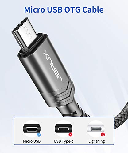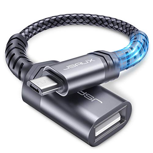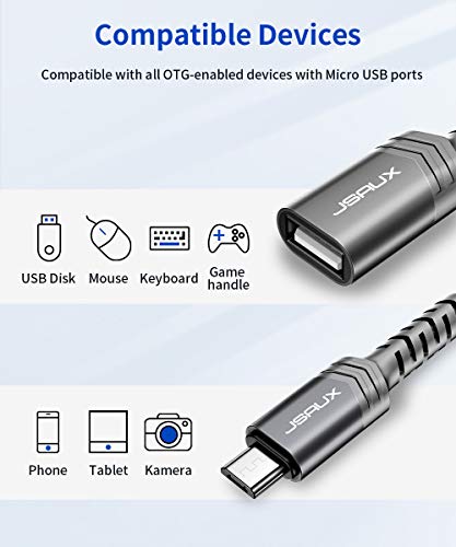 JSAUX - كابل محول او تي جي ذكر إلى Micro USB 2.0 أنثى لسامسونج S7/S6 ايدج، نوت 5/4/s4/s3 من جي سوكس، (رمادي) عبوة من قطعتين