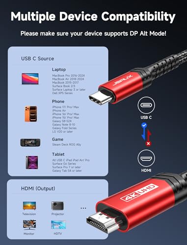 JSAUX - كابل من JSAUX بطول 10 قدم نوع HDMI متوافق مع ماك بوك المزود بمنفذ USB-C