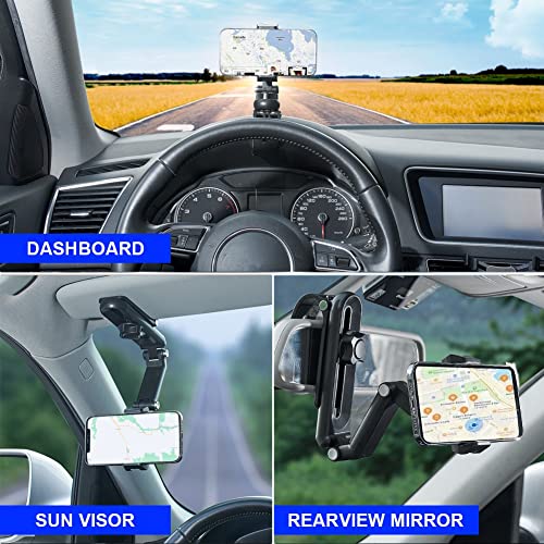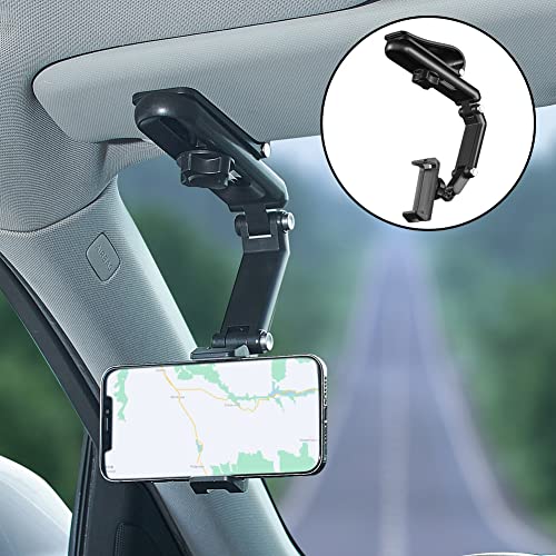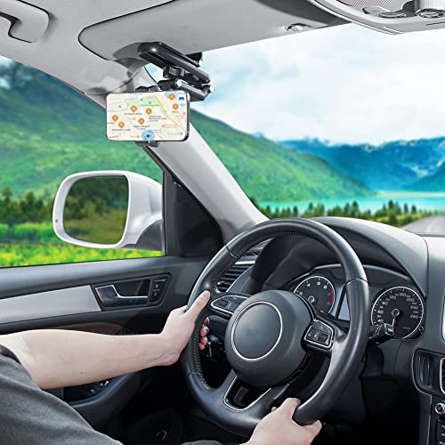 JSCARLIFE - حامل موبايل للسيارة يثبت على حاجب الشمس من جي سكارلايف، حامل موبايل للسيارة، مشبك تثبيت للموبايل، حامل موبايل للسيارة قابل للدوران 360 درجة
