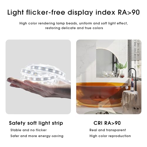 - ✿【وظيفة مقاومة الانفجار】: مرآة الحائط مصنوعة من مرآة ذكية مقاومة للانفجار، مغطاة بطبقة مقاومة للانفجار، مكسورة دون تناثر السوائل، غشاء مقاوم للانفجار على الظهر يضمن السلامة الكافية للوصول إلى مستوى مقاومة الماء IP44، مناسبة بشكل خاص للحمامات الرطبة.