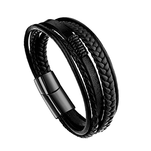 Jstyle - إسورة من جيه ستايل للجنسين، مصنوعة من الجلد، بلون أسود وتصميم كلاسيكي، مقاس 20.32 سم