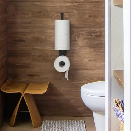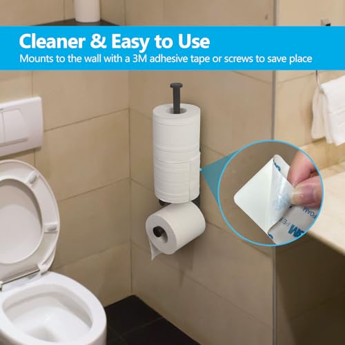 JSVER - حامل ورق تواليت يثبت على الحائط من جيه اس في اي ار، بدون ثقب، تخزين ورق التواليت من الفولاذ المقاوم للصدأ، قائم مع مساحة لـ 3 بكرات احتياطية للحمام والمرحاض، أسود