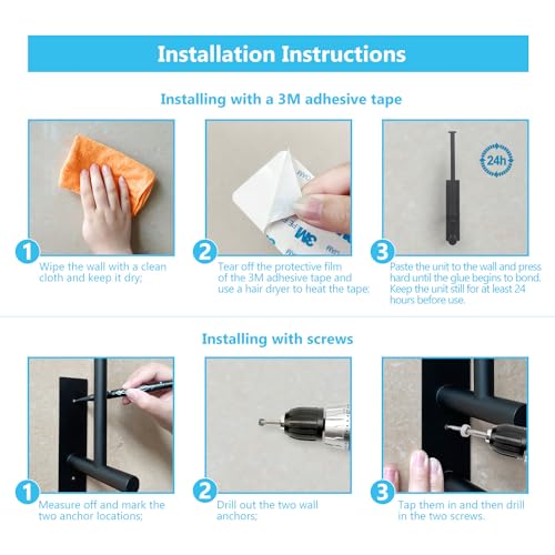- طريقتان للتركيب: يتم تثبيت ورق المرحاض بمسامير وهو آمن للغاية بحيث لا داعي للقلق بشأن سقوطه من الحائط. بديل للثقب يوفر خطافات لاصقة 3 ام. سهل التركيب، لا يحتاج إلى أدوات ويمكن إزالته بشكل نظيف وخالي من التلف.