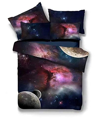 JTBDWOSS - طقم غطاء لحاف ثلاثي الأبعاد من الحرير بتصميم سماء مرصعة بالنجوم مقاس 2×2 متر وكيس مخدة للأطفال والأولاد والبنات - طقم ملاية سرير بسوستة ناعم ومضاد للحساسية من جيه تي بي دي دبليو او اس®، كوكبي