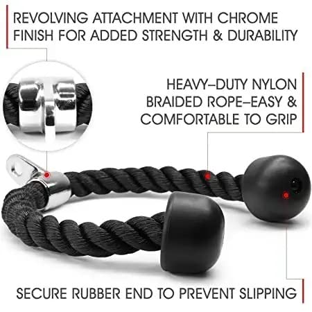 - حبل ثلاثي الرؤوس 27 انش، قضيب مقبض على شكل حرف V وقضيب مستقيم دوار.