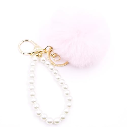 jtkdxqs - سلسلة مفاتيح بوم بوم ناعمة من جيه تي كيه دي اكس كيو اس، سلسلة مفاتيح بتصميم كرة منفوخة مع سوار معصم من اللؤلؤ، سلسلة مفاتيح للبنات والنساء
