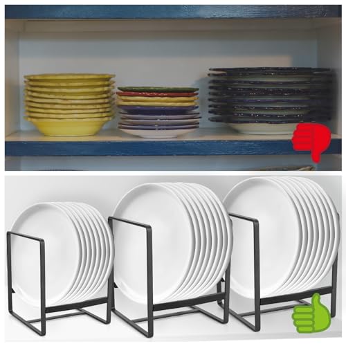 - حجم مثالي: ستحصلين على طقم من 3 قطع باللون الأسود الأنيق. حيث يتميز حامل الأطباق المعدني للخزانة بأبعاد تبلغ 20 × 16 × 11.5 سم و14 × 12 × 11.5 سم. مع تصميم بسيط شكل U، مما يسمح بتخزين أطباق أو أوعية عميقة بأحجام مختلفة، مع إمكانية استيعاب ما يصل إلى 10 أطباق. كما يوفر الحجم المثالي لتخزين وعرض وتجفيف الأطباق دون استهلاك مساحة كبيرة في مطبخك.
