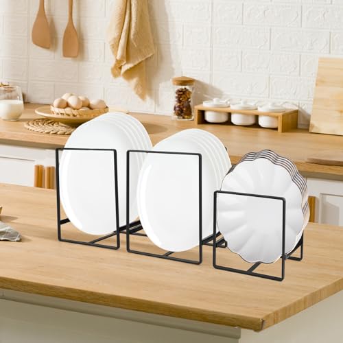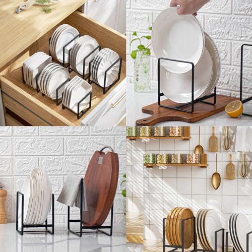 JTOOYS - طقم حامل أطباق معدني بتصميم يعمل كرف تخزين أو صفاية مكون من 3 قطع بنمط متعدد الوظائف لتنظيم الأطباق وألواح التقطيع وأغطية الأواني للمطبخ، لون أسود