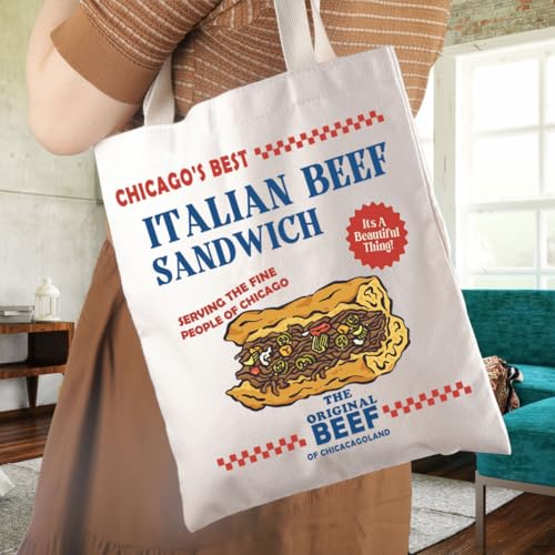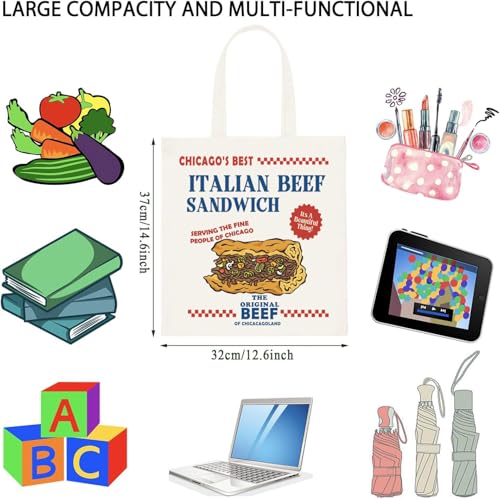 JTOUK - شنطة يد كبيرة توت من جيه توك بتصميم دب وساندويتش لحم البقر الايطالي وطعام شيكاغو هدية مستوحاة من برنامج الدب التلفزيوني