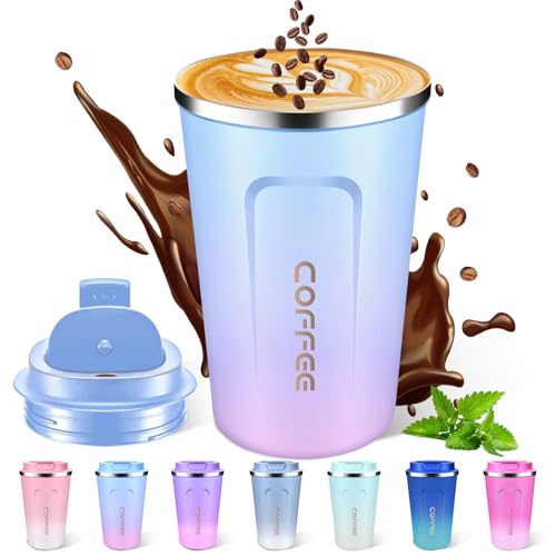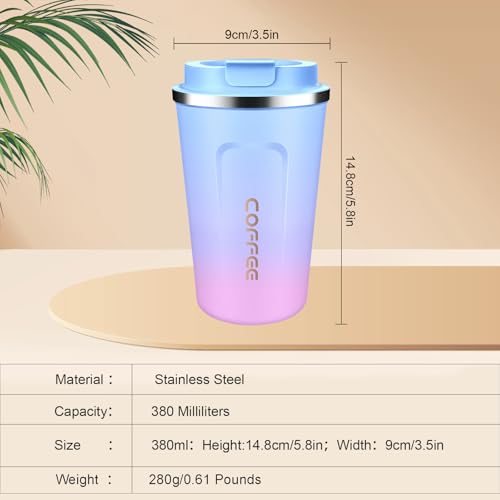 JTRYEMU - مج قهوة للسفر معزول قابل لإعادة الاستخدام مع غطاء مضاد للتسرب ومضاد للانسكاب كوب ترمس حراري مزدوج الجدار من الفولاذ المقاوم للصدأ للمشروبات الساخنة والباردة بسعة 380 مل من جتريمو