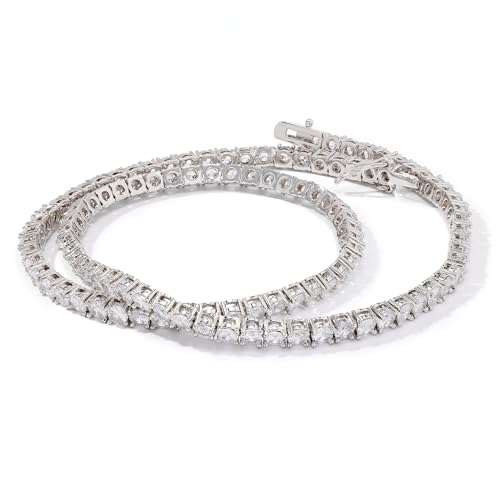 JTV - جيه تي في عقد تنس مرصع بالزركونيا المكعب الابيض - 45.0 قيراط، نحاس فضي اللون، مجوهرات انيقة ولامعة للنساء، نحاس، زركونيا مكعب