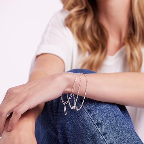 generic - سوار ثلاثي من الفضة الاسترليني من جيه تي في: مجموعة من 3 قطع مع خرز مقطوع بالألماس ومشبك ورق وتصميمات حلقات سنغافورة