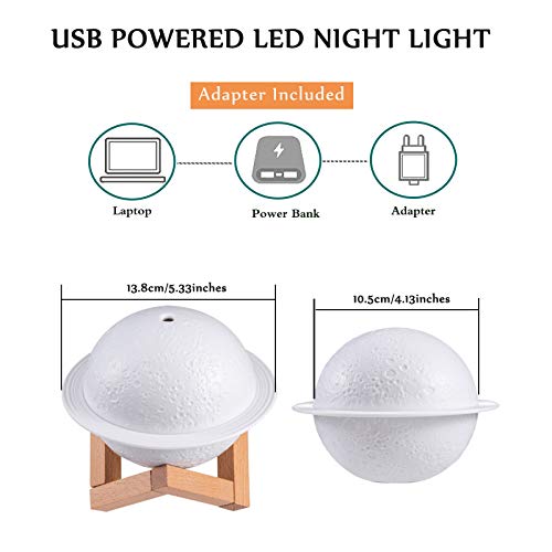 Jubapoz - مصباح جوبابوز LED بطبعة ثلاثية الابعاد على شكل كوكب من ساترن، مرطب رذاذ بارد سعة 200 مل مع وضعين للتشغيل، بجانب السرير ب 3 الوان حامل، مناسب للهدايا وديكور الغرفة، بني