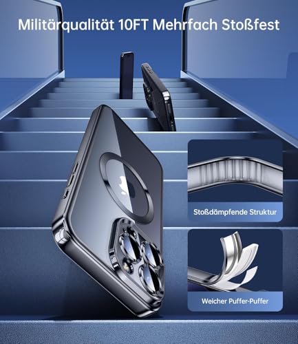 JUESHITUO - جراب حماية مجموعة اينهايتشوتس مقاوم للخدش للنساء والبنات 6.1 بوصة من جوشيتو لموبايل ايفون 15 برو ماكس (بحماية مدمجة للكاميرا) [مغناطيس قوي N56] متوافق مع ماج سيف - تيتانيوم، أسود