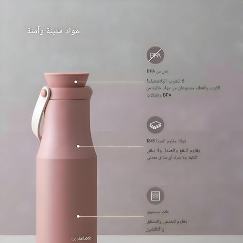 - هيكل خفيف الوزن من الستانلس ستيل بتصميم نحيف يجعل من السهل حمله، مناسب تمامًا في اليد أو حاملات الأكواب في السيارة.