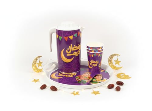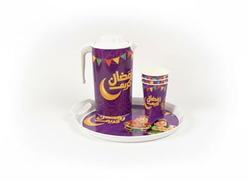 Generic - شفشق بتصميم رمضان بغطاء بلاستيكي وثلاثة اكواب بلاستيكية - ارجواني