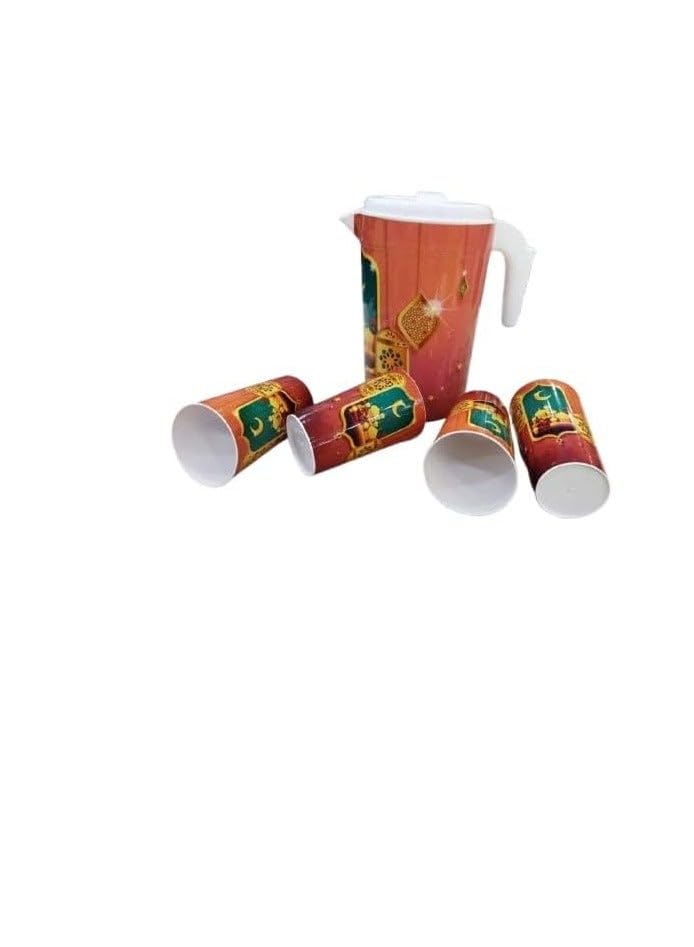 generic - طقم ابريق + 3 اكواب، اشكال رمضان جميلة جدًا، بلاستيك، سعة ابريق 1.8 لتر ايه بي (احمر)