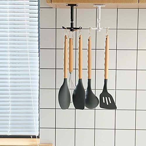 JUGTE - خطاف جداري دوار قابل للطي والتعديل من جوجتي، حامل ادوات تناول الطعام وفوط الحمام بزاوية 360 درجة، رف تعليق ومنظم عمودي للمنزل والمكتب ذاتي اللصق/ شديد التحمل/ اسود/6 مخالب (قطعتان)، بلاستيك