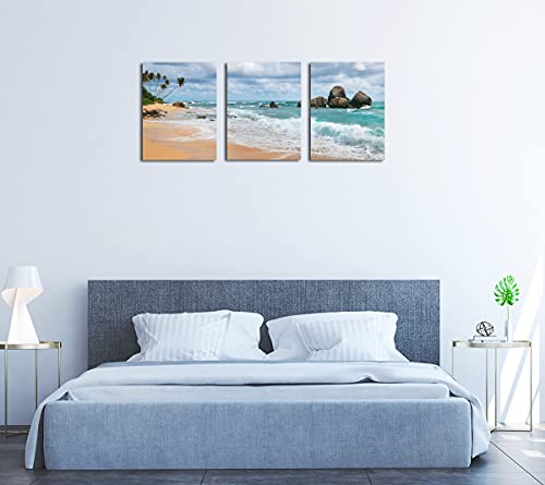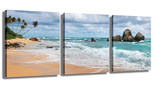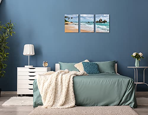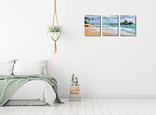 Generic - لوحات جدارية من جوهوسو، طباعة كانفاس لغرفة النوم بتصميم مناظر بحرية وشواطئ استوائية باللون الأزرق، مقاس 30.48 × 40.64 سم، مجموعة من 3 قطع