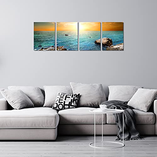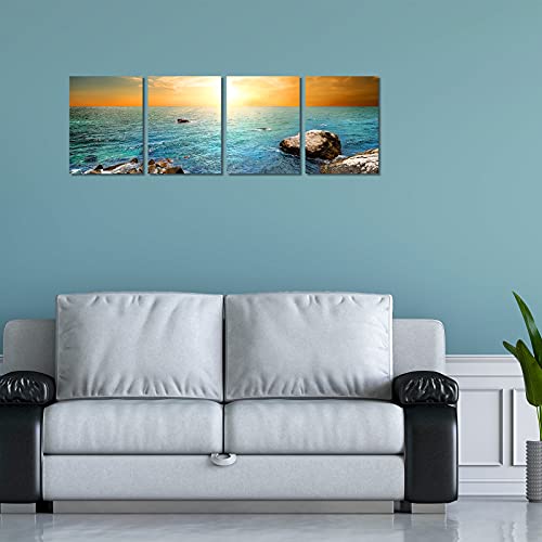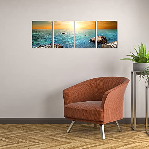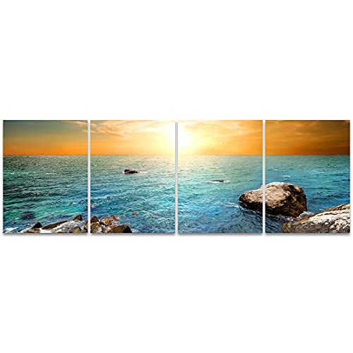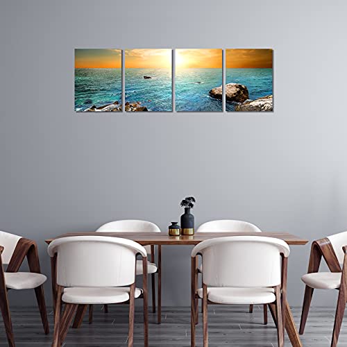 JUIMDDFR - لوحة فنية جدارية عصرية بتصميم شروق الشمس مطبوعة على القماش بإطار للمطبخ والحمام وغرفة المعيشة والمكتب والمنزل وللكريسماس والعطلات وللنساء والرجال، مكونة من من 4 لوحات مقاس 30.4 × 40.6 سم، أزرق مخضر