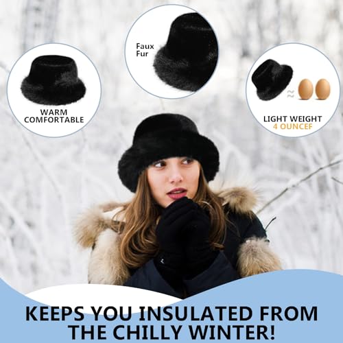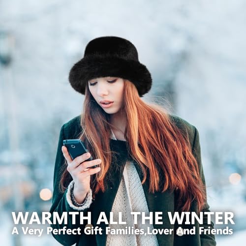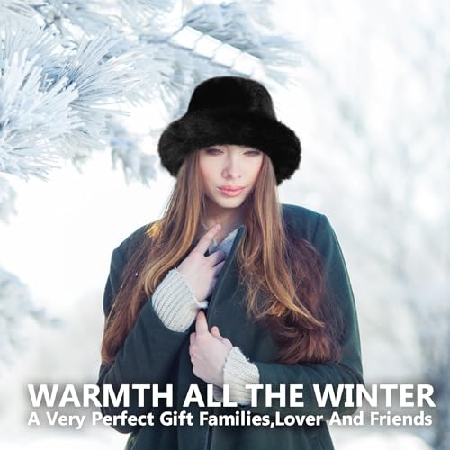 Juiterchy - قبعة باكيت من الفرو الصناعي بحافة عريضة للنساء من جويترشي، قبعة شتوية منفوشة للتدفئة للصياد