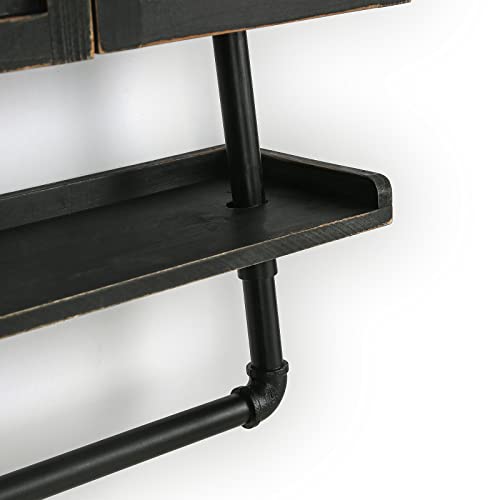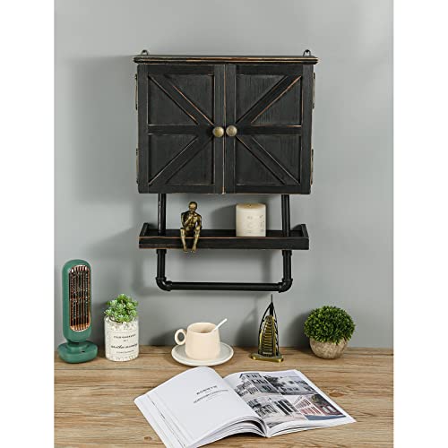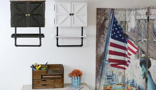 Juleduo - منظم حائط للحمام مع رف قابل للتعديل وقضيب فوط، دولاب أدوية ببابين يثبت على الحائط مع قضيب تعليق، دولاب تخزين من الخشب الصلب خفيف الوزن للمطبخ من جوليديو، مقاس 57× 43 سم (أسود)