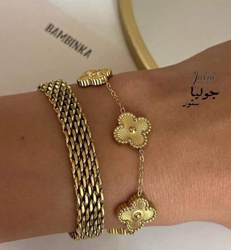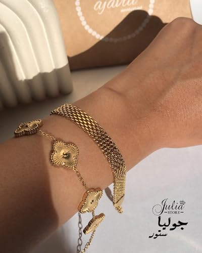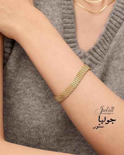 Julia Store - سوار ربط شبكي ايطالي من الذهب عيار 18 قيراط من جوليا ستور، سوار بسمارك، سوار متعرج مضفر 4.4 ملم، هدية للكريسماس وعيد الحب للنساء