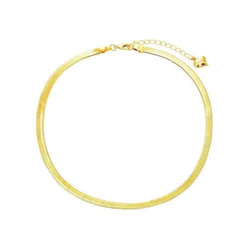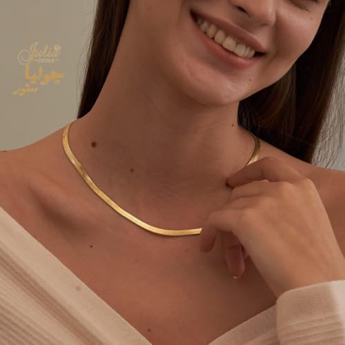 Julia Store - سلسلة بتصميم ثعبان من الستانلس ستيل المطلي بالذهب عيار 18 قيراط 5 ملم جوليا ستور، قلادة شوكر مسطحة متعرجة قابلة للتعديل، هدية مجوهرات بسيطة، للكبار الجنسين